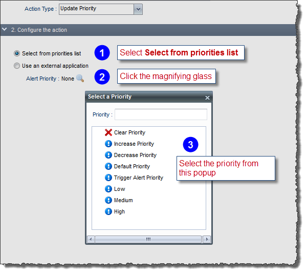 Actions are executed as the result of a correlation rule being evaluated, and you can access them using the right-click menu on the alert console and execute them directly against the selected alert. Click the Actions tab to create actions that you can use to automatically address various conditions detected by the system. Using this tab and its graphical rule builder, you name, describe, and configure actions. You can also create action groups to which you add actions to create a batch of actions that can be run at one time.